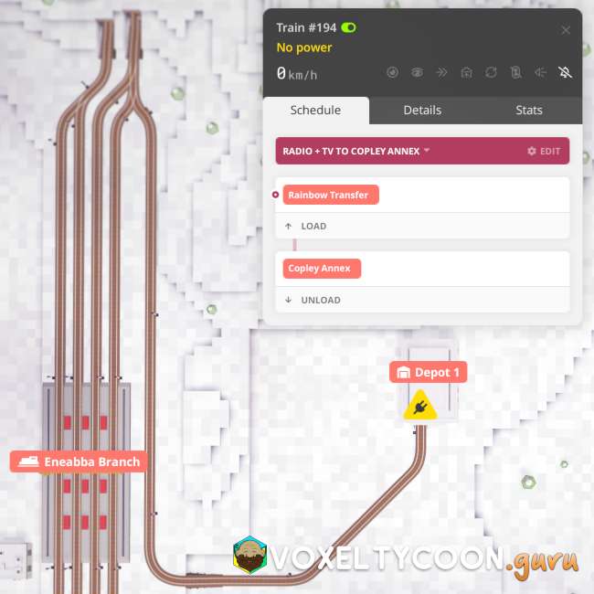 - In the screenshot above, the train in question was purchased in a depot that does not have access to the train network the next stop is on