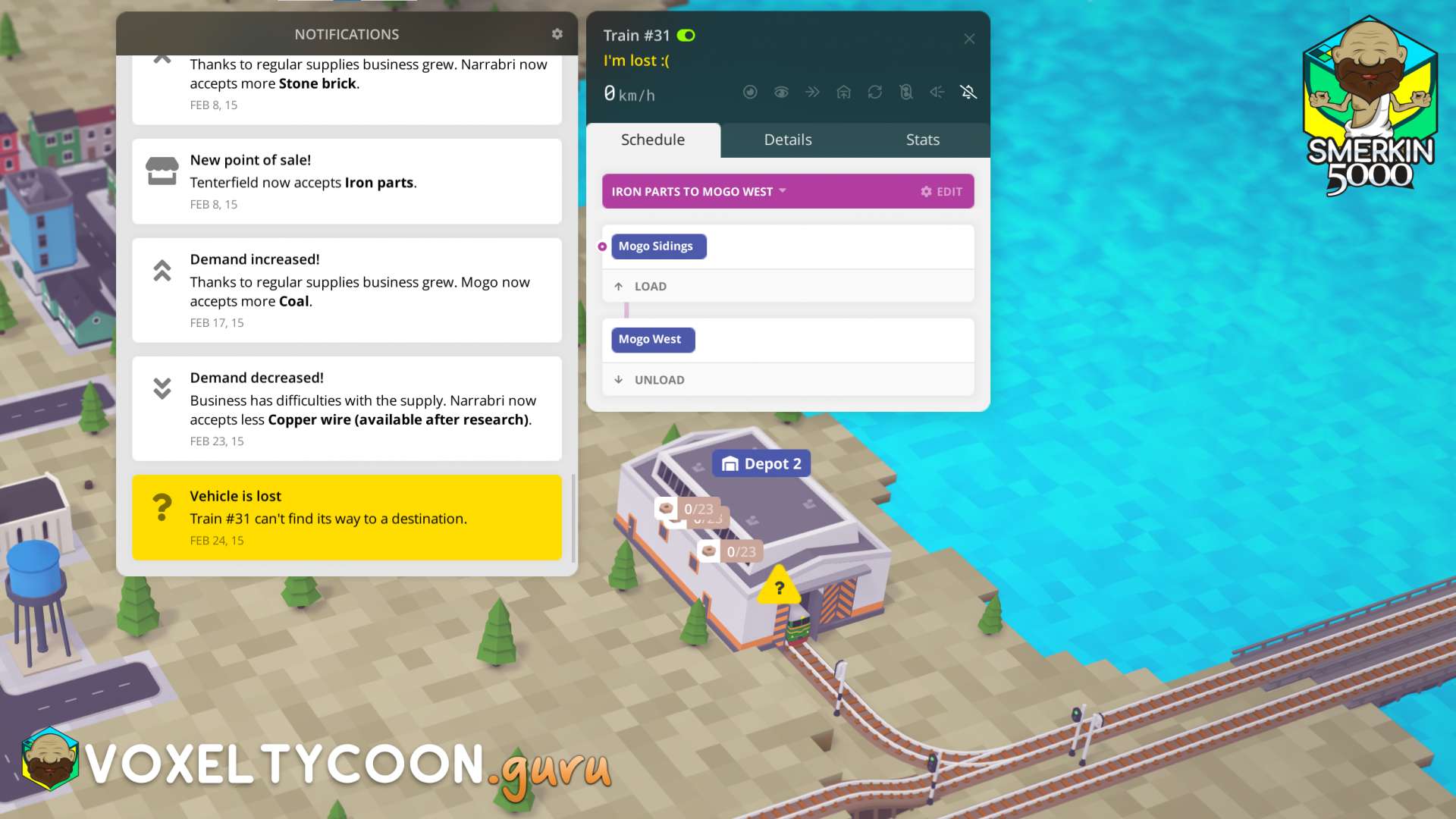 - Vehicles and trains will generate a "Vehicle is lost" notification when