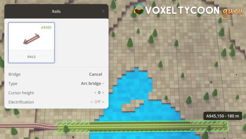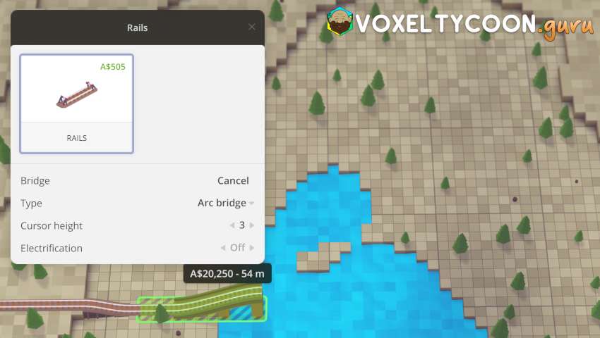 • Changing the cursor height to 0 allows you to run the bridge across the water