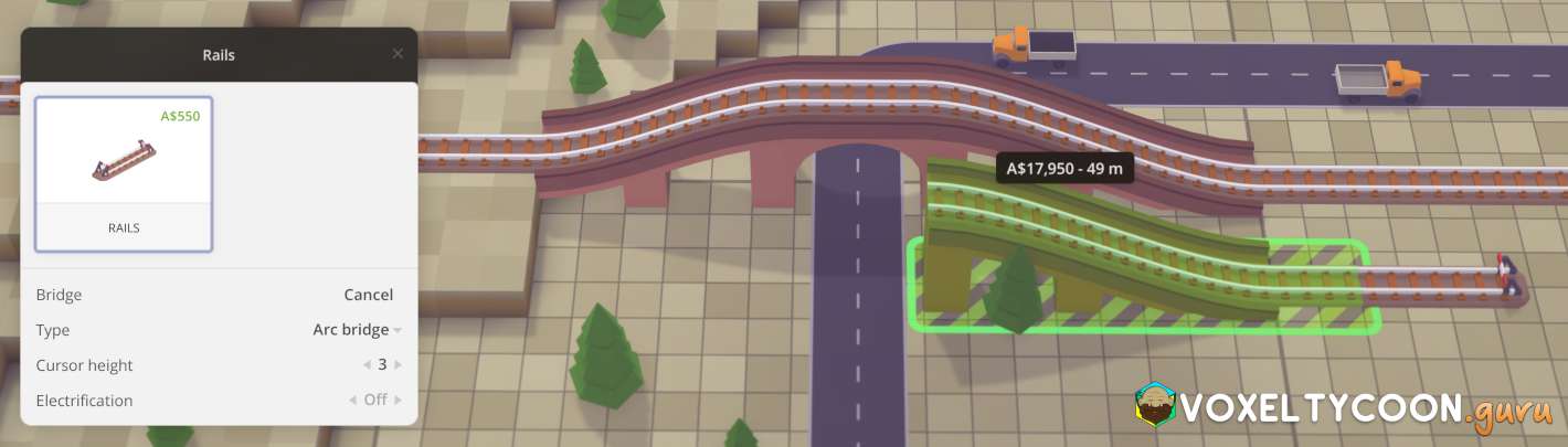 • Now that you are in lay rail build mode press B to change to bridge mode