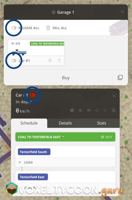 - Clicking the Release from depot slider when viewing any vehicle