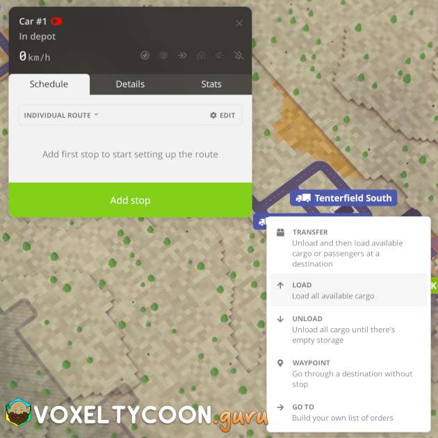 - Click on the desired freight station on the map, this will prompt you to select the operation for this stop
