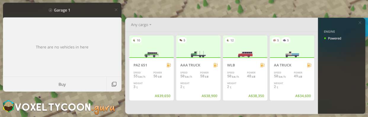- There are different vehicles that transport different cargo types, you will need to buy a vehicle that is appropriate for the job at hand