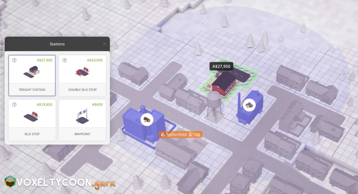 - When building a freight station, any buildings that can accept an load or unload operation will be highlighted and these will be within the oval that surrounds the station