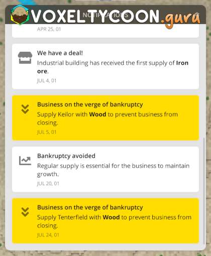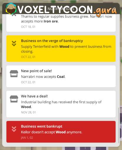- If you failed to meet the deadline or decided not to sell to that business then you will get a red notification telling you the business went bankrupt