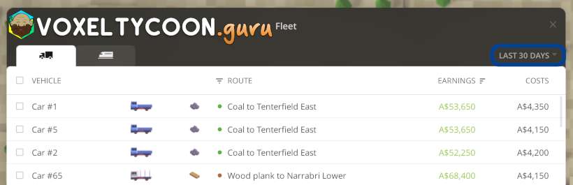 - The Fleet menu allows you to view your overall fleet from a glance and perform actions against multiple vehicles/trains