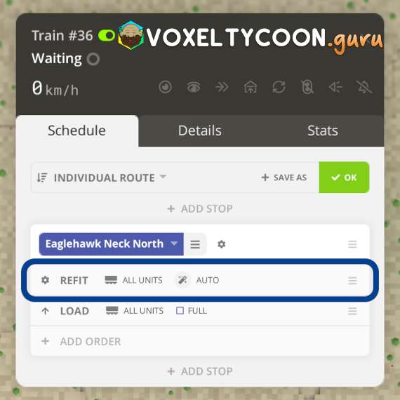 • Refit cargo allows you to designate a vehicle/train for multiple purposes