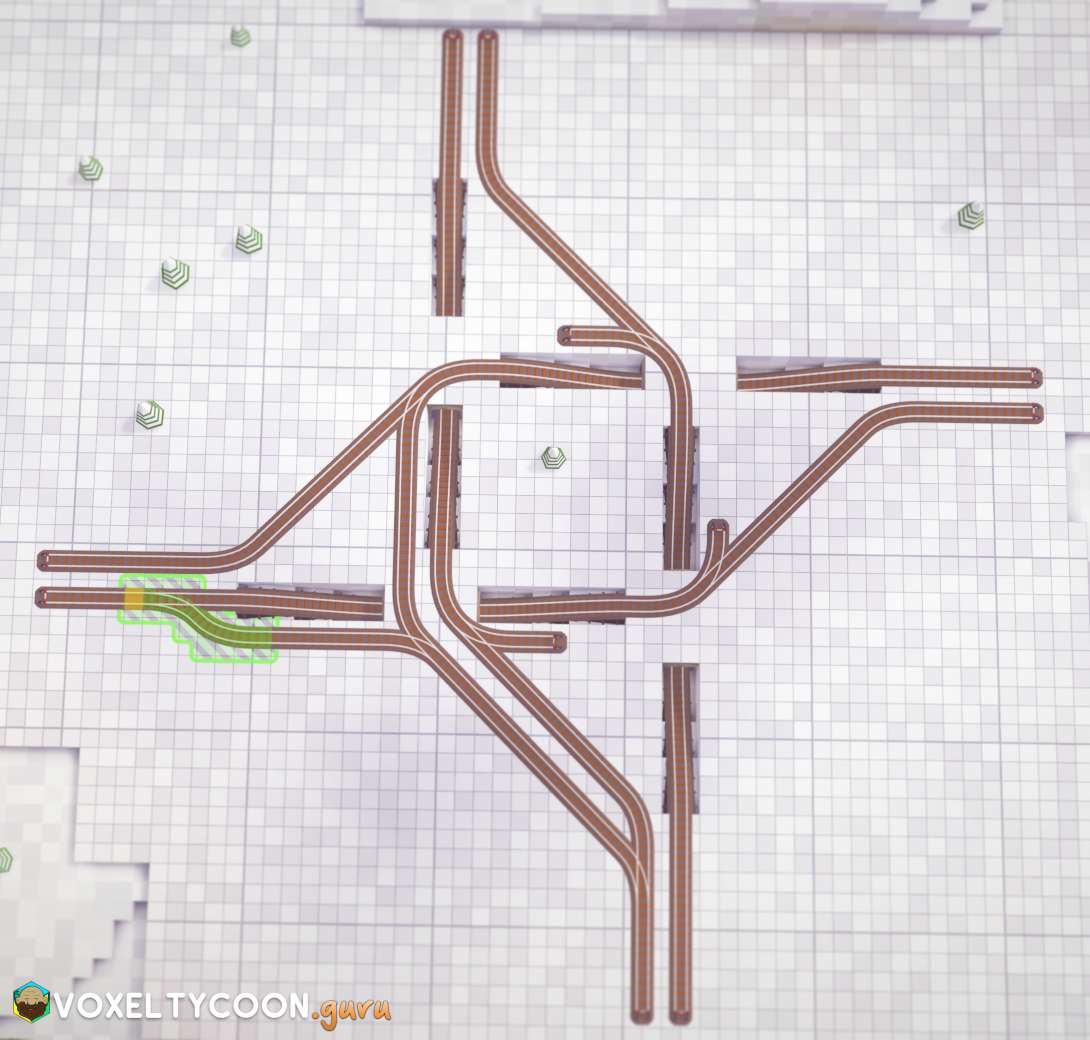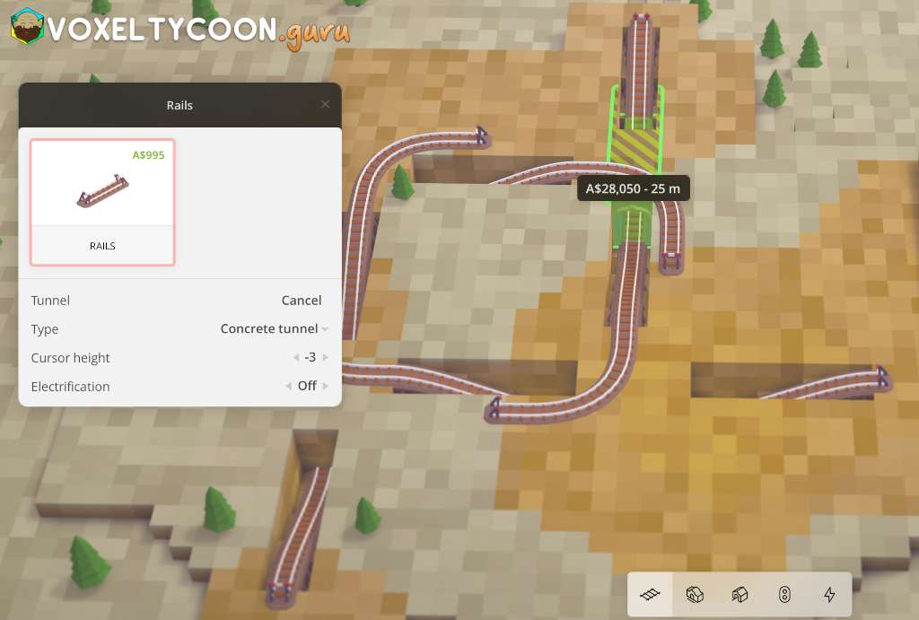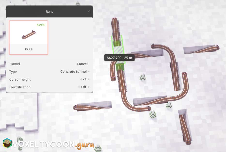 - Using the Lay rails tool, start off by clicking the rail at one side and then press the T key to change to tunnel mode