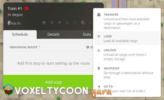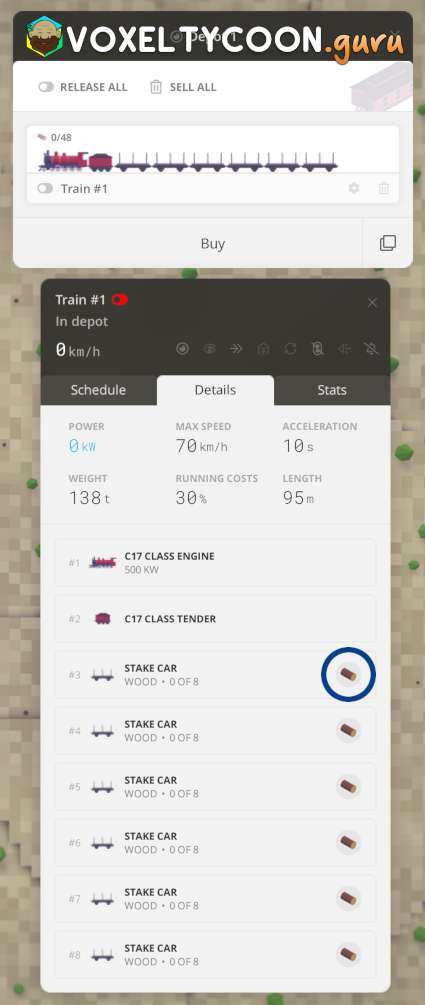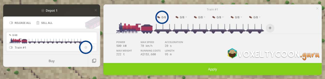 A great time saving feature of a depot is the ability to copy an existing train, this allows you to deploy an identical train that is already configured with the cargo along with the route.