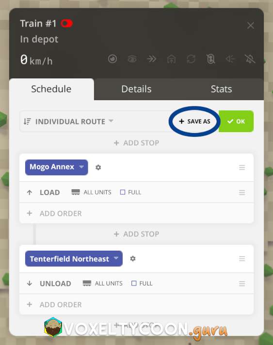 - At this point you are ready to release the train from the depot, however it's best to save this route so it can be used by multiple vehicles