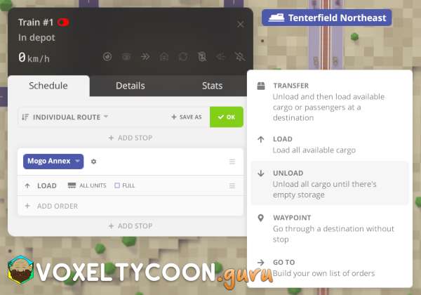 - Click on the desired freight station on the map, this will prompt you to select the operation for this stop