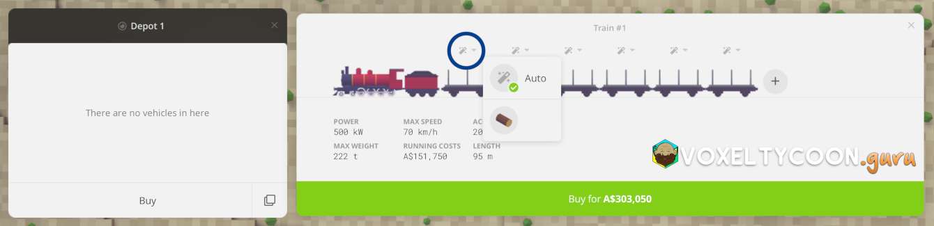 - When buying a train car by clicking the wand icon and changing the item type from Auto to your choice