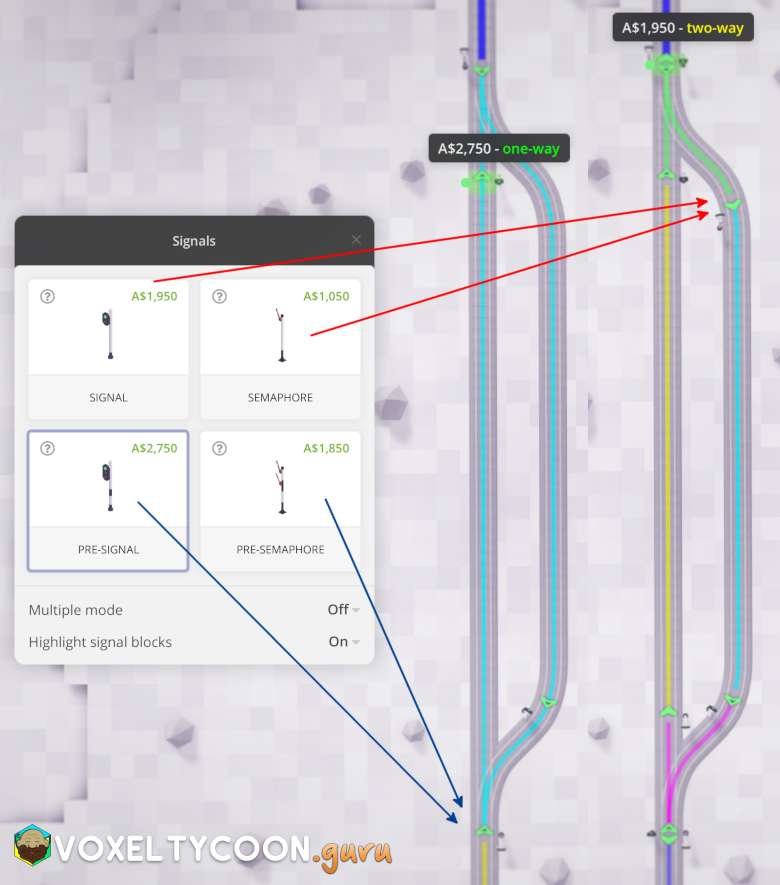 - Now that the trains have entered the separate passing lane blocks the outside exit signals are now open